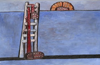 I've included examples of his early works and his works later in his career. The first work, "To Felleni" was completed in 1958 and the second "Ladder" was completed in 1978. The differences between the two are dramatic and one can see how far he strayed from the acceptable style of the times. He was a rebellious and pioneer. Now his later works are celebrated in today's art world for their originality and message.
